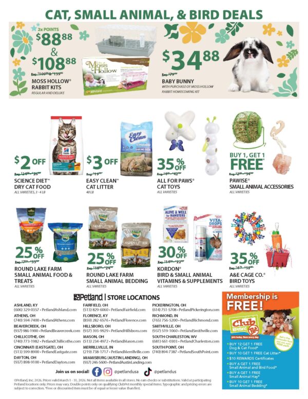 We have specials for all types of pets. Come on in and start saving today!